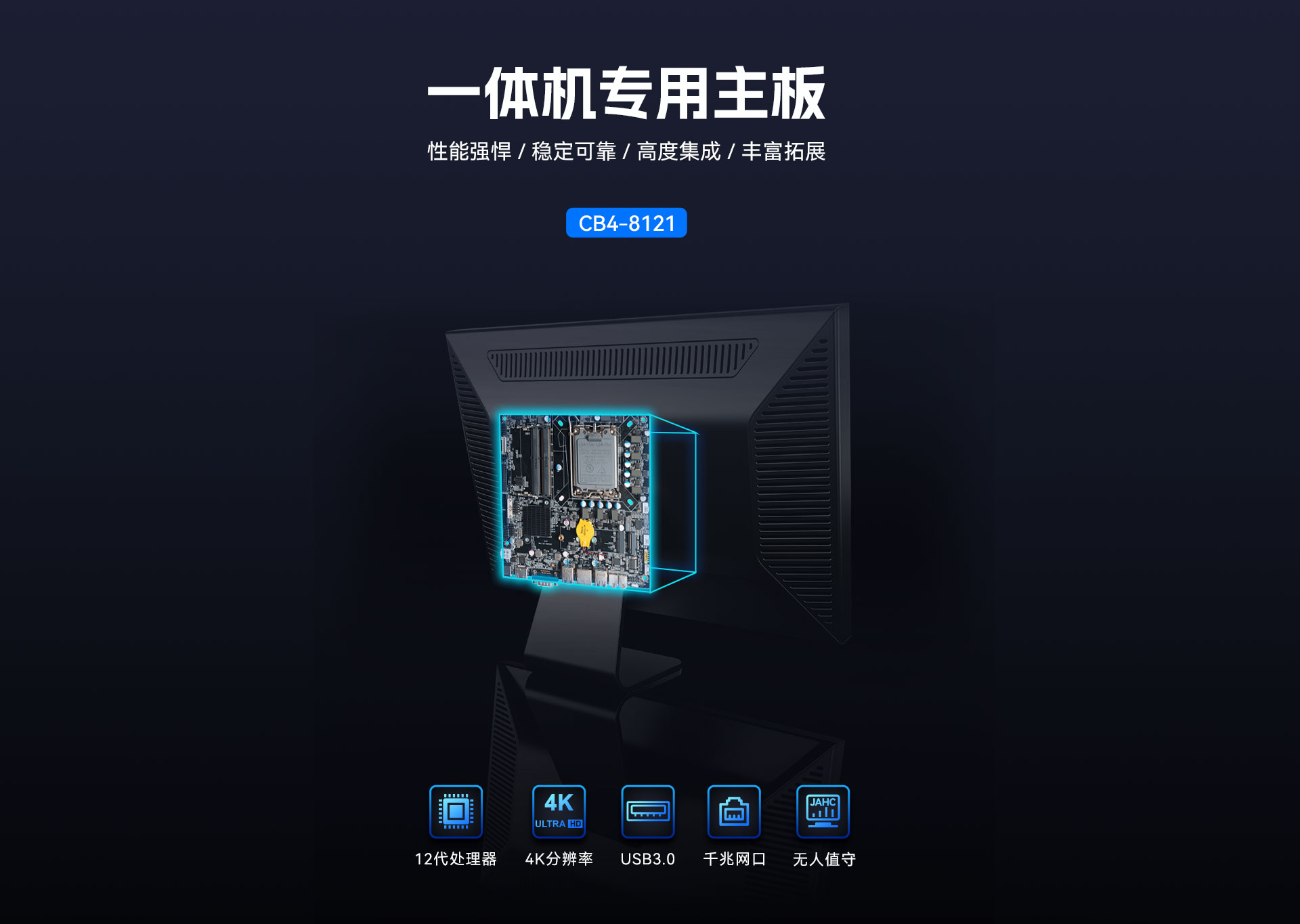 而一体机主板作为一体机的核心组件,其性能直接决定了整机的表现,星空电竞科技根据以上的市场情况及客户需求,推出这款高性能的基于Thin mini ITX一体机标准设计的一体机专研主板CB4-8121。