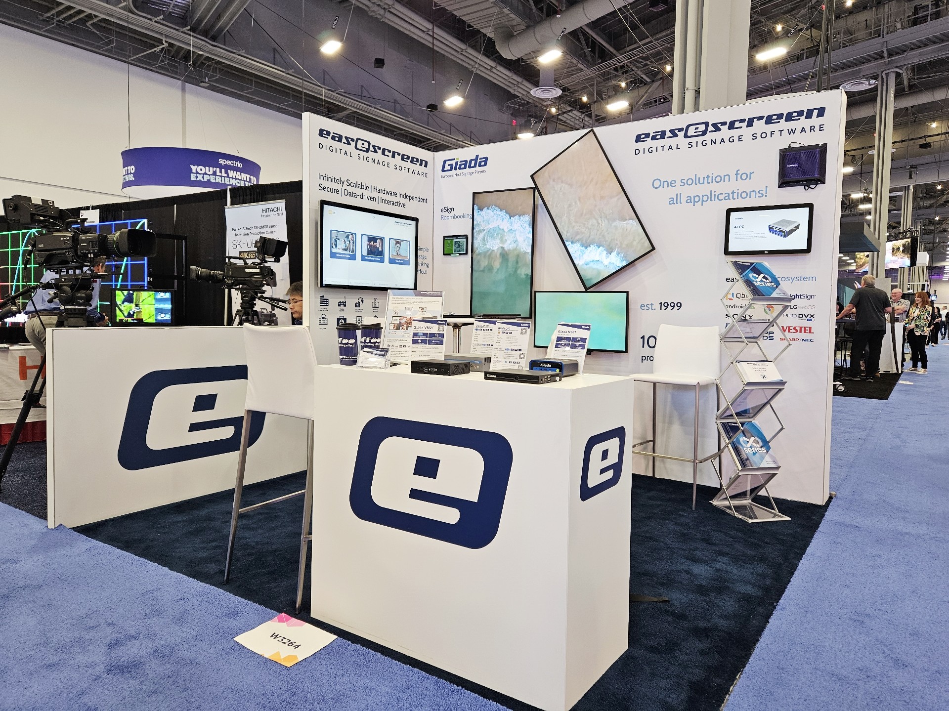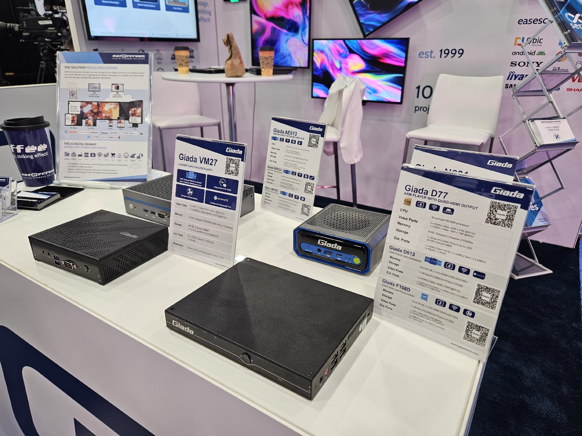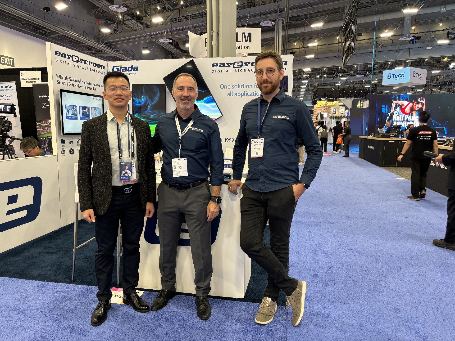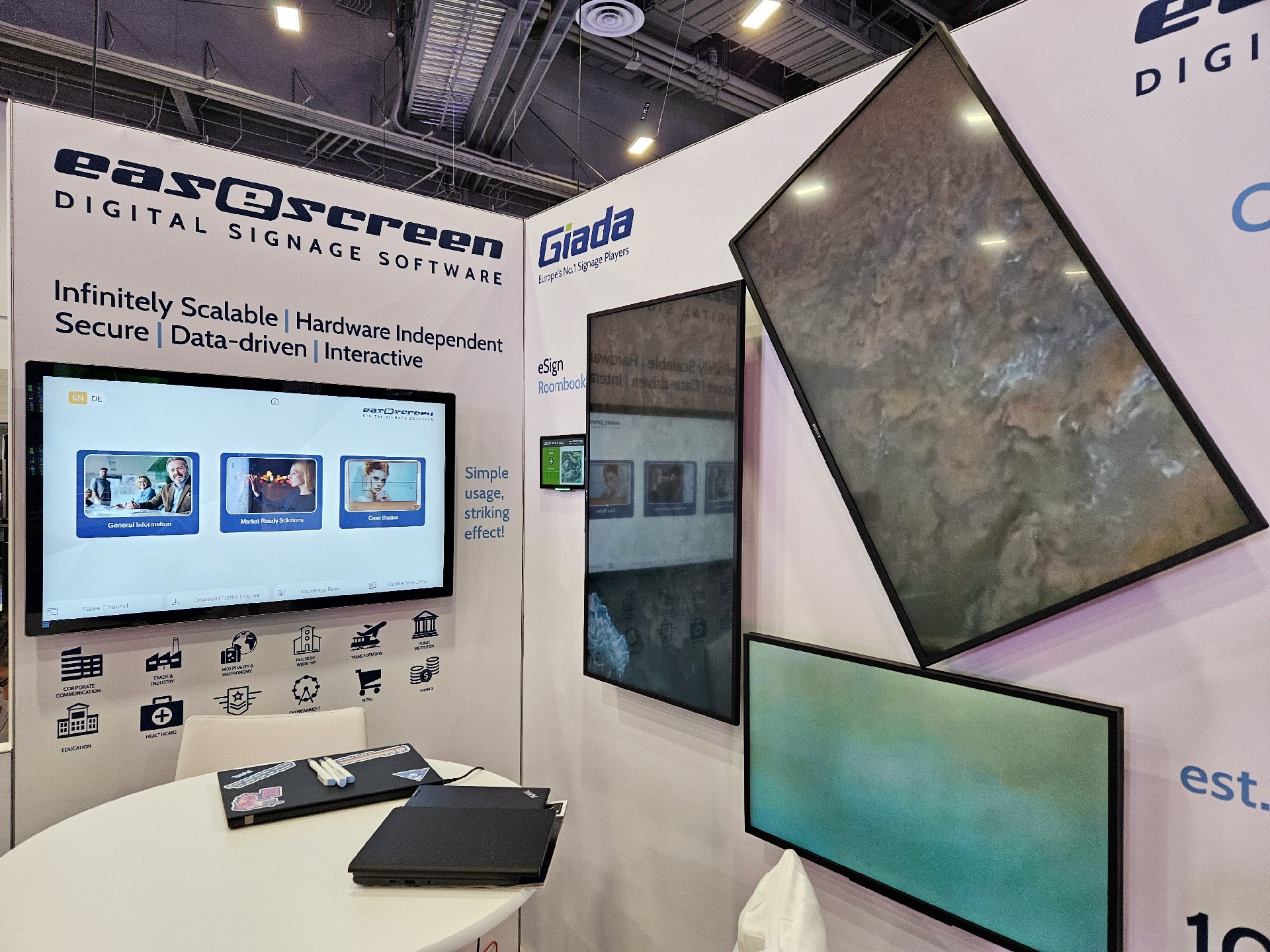 星空电竞科技Giada作为全球数字标牌领域的领导品牌,产品应用范围涵盖全球大型连锁店,购物中心,学校,医疗机构,企业办公室等。本次展会,星空电竞科技牵手合作伙伴easescreen,展示一系列创新数字标牌解决方案,带来强势产品及最新产品,现场收获超高人气。