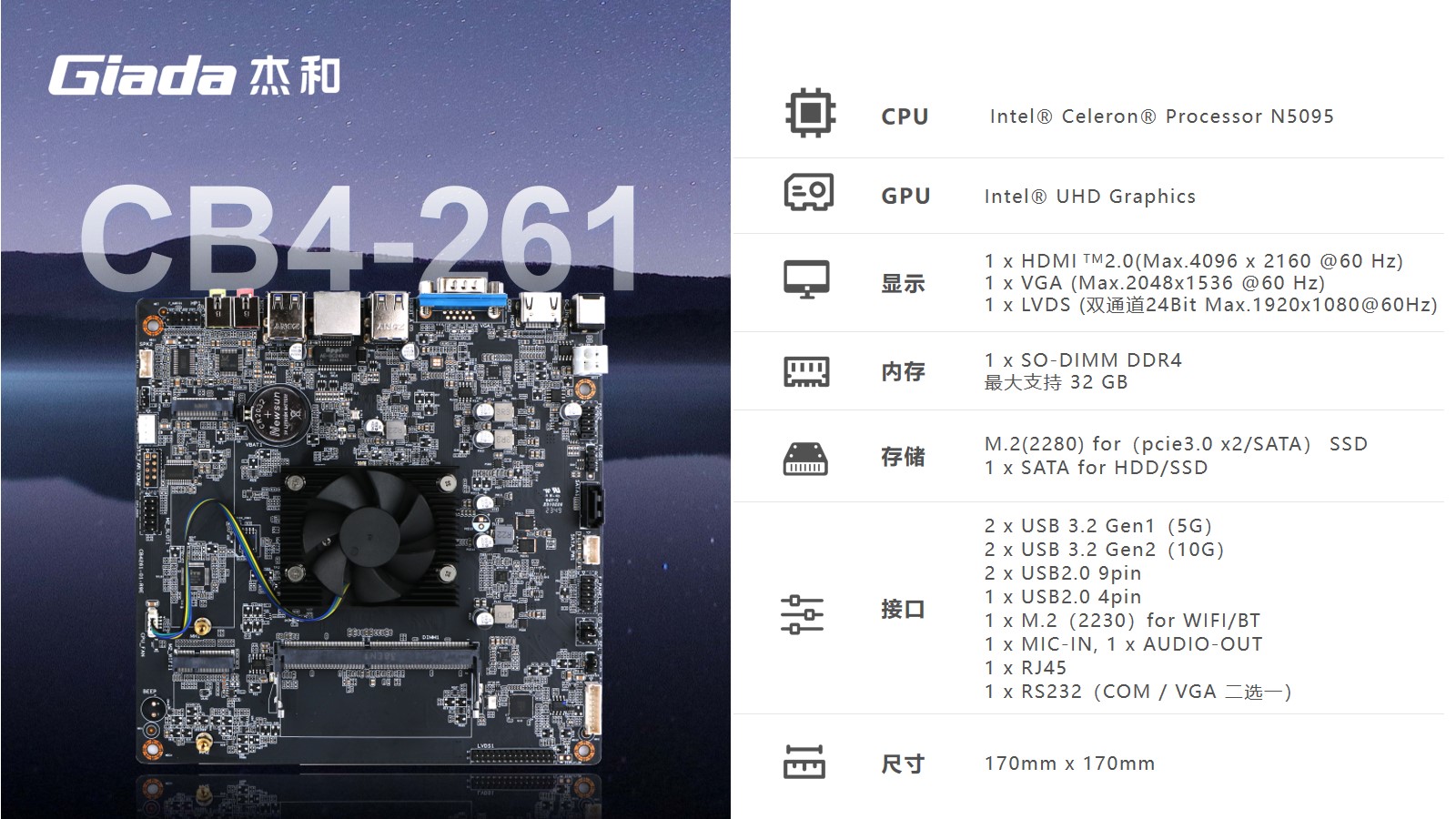 一款高性能的主板是终端机稳定运行的关键,基于Intel Jasper Lake平台的N5095芯片,星空电竞科技推出了一体机专研主板CB4-261。