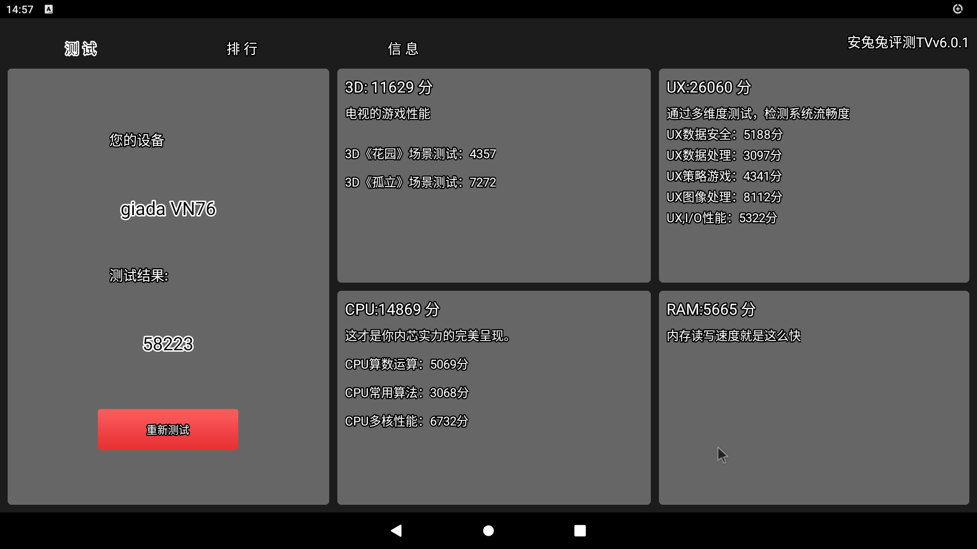 对于云终端来说,使用性能也至为重要,在性能测试中,星空电竞在测试软件:Antutu 6.01、3DMark、PCMark、NenaMark进行跑分测试,测试结果表明Y-BOX SA1可应对轻度办公使用。
