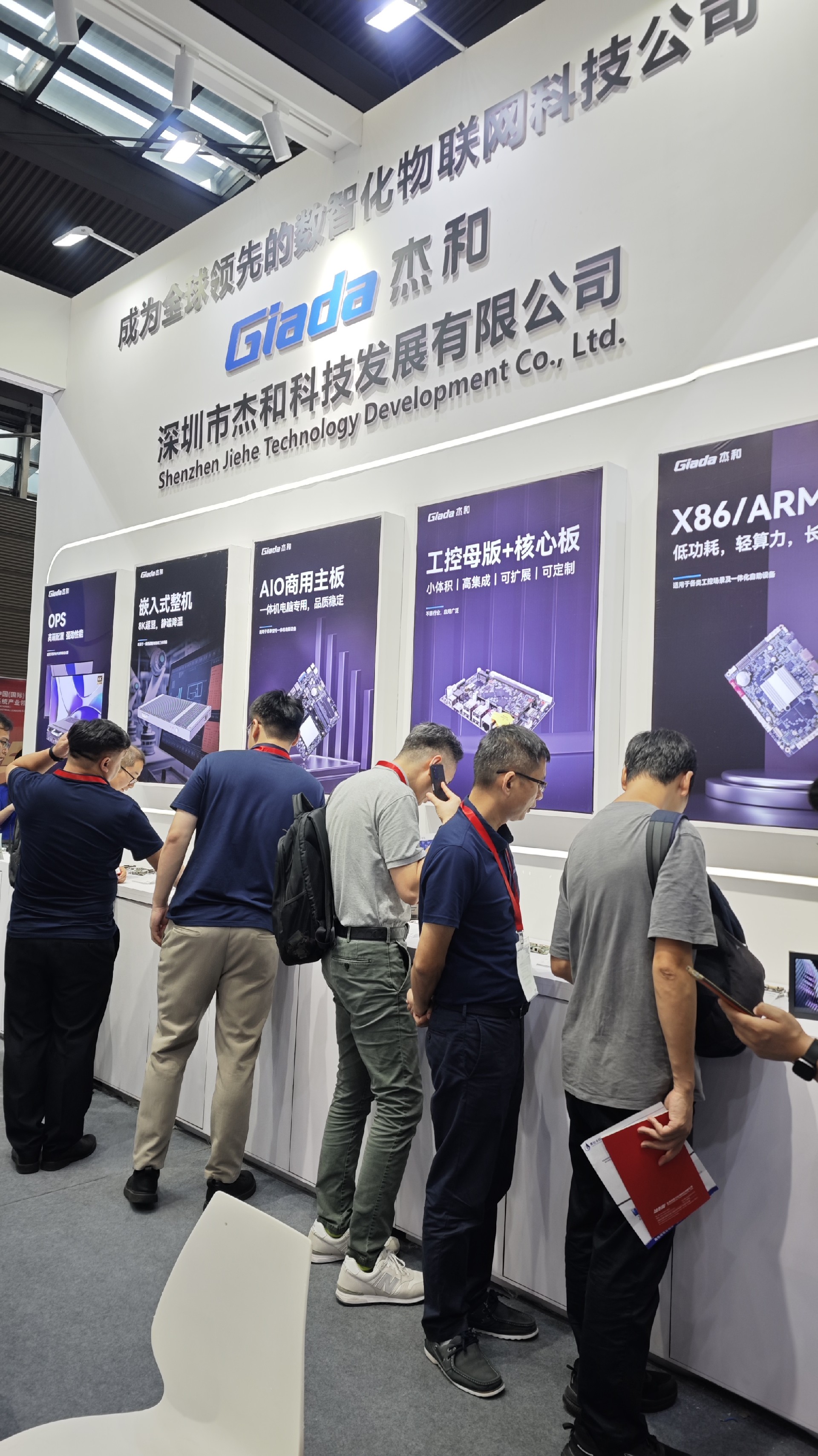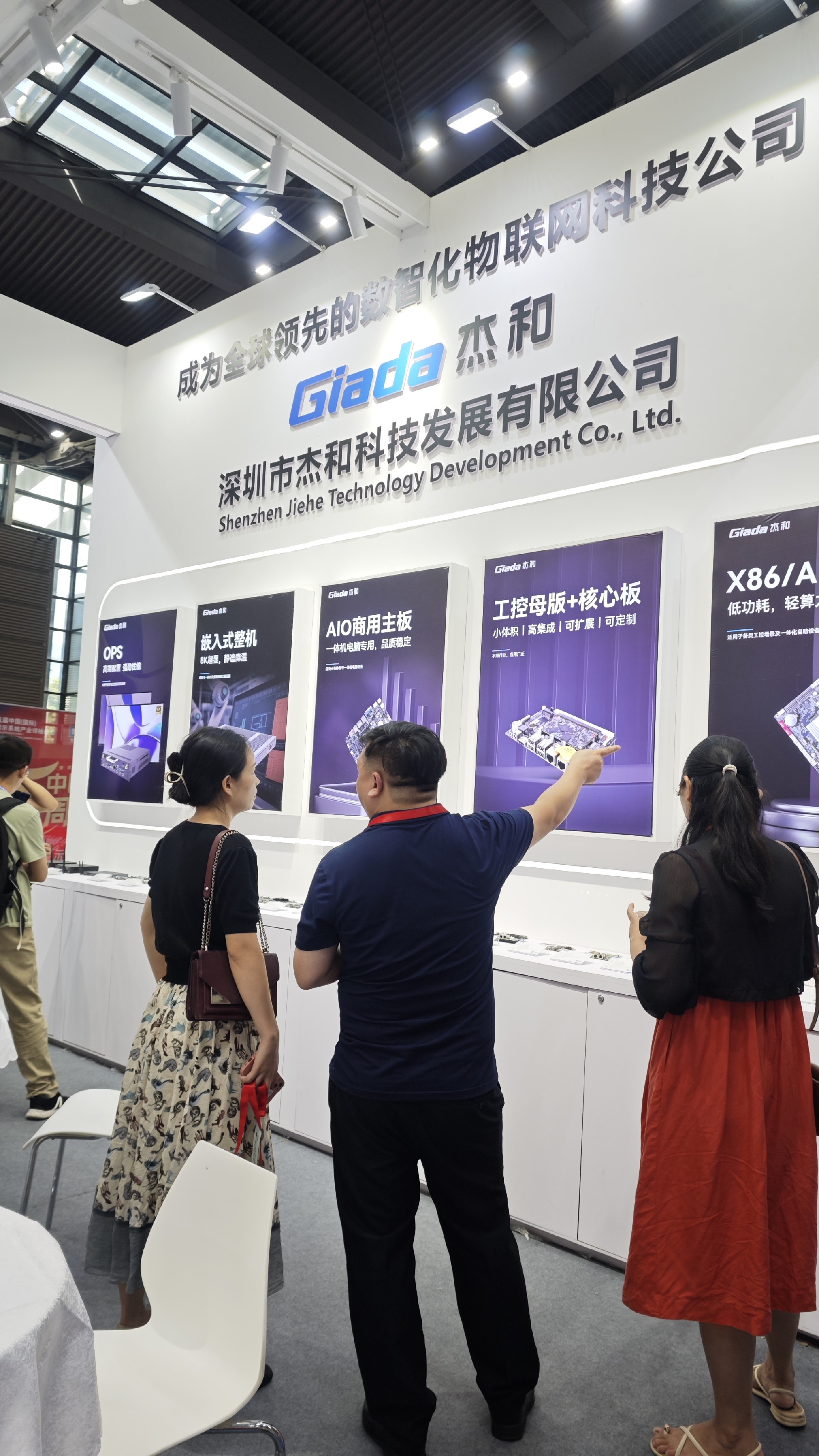 星空电竞科技展位放置在c位的明星产品和最新产品吸引了众多参观者的目光。展台下方整齐排列着公司的产品,包括主板、嵌入式整机、OPS等,这些产品不仅适用于商业展示领域,还广泛应用于工业、制造业和教育业等多个行业。