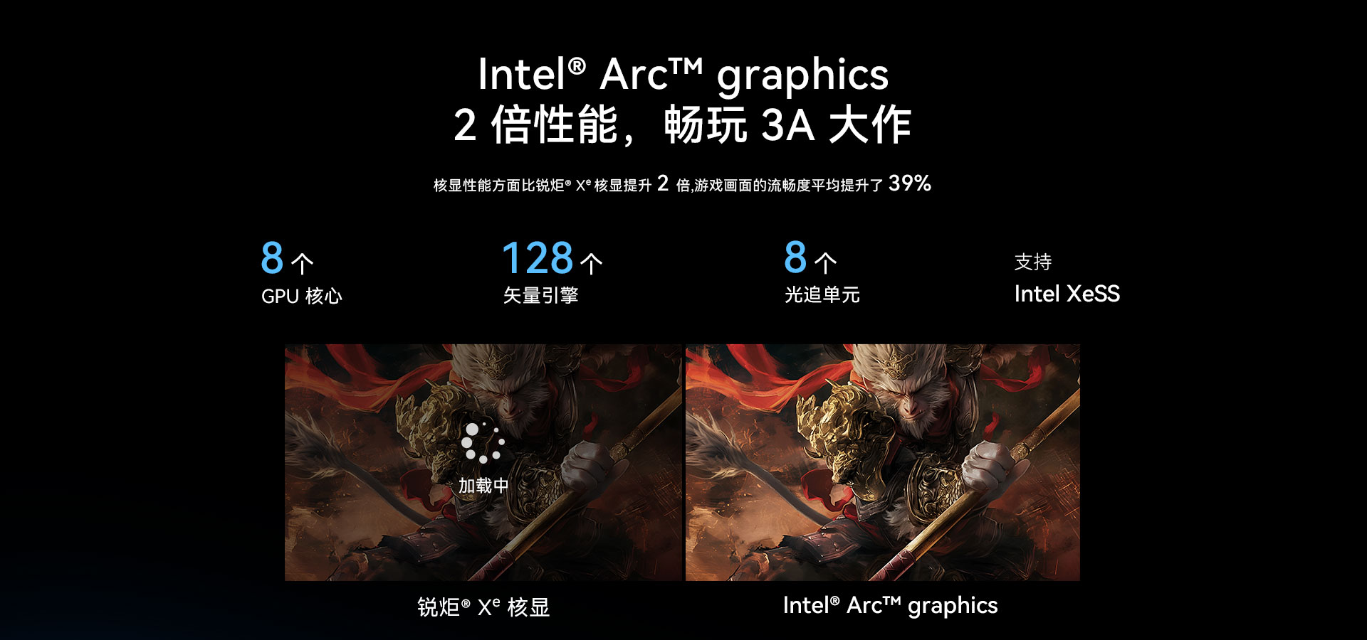 星空电竞科技N601拥有强大的图像性能,无论是图形创作,还是3A游戏,英特尔锐炫™GPU可以让用户充分享受更高的画面质量和更流畅的游戏体验。