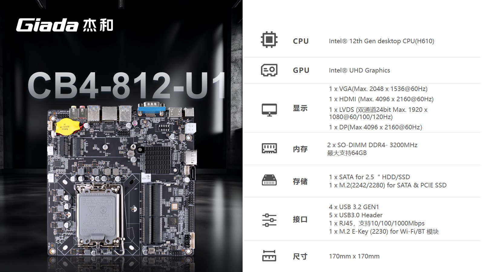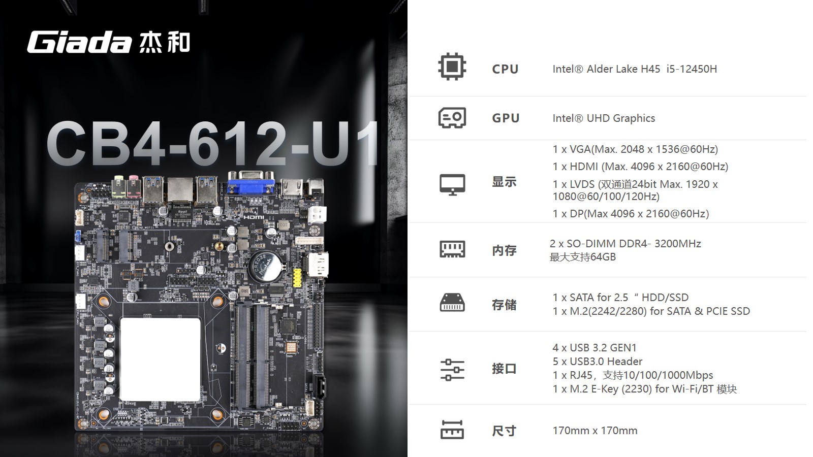 以最新的主板CB4-812-U1、CB4-612-U1为例,CB4-812-U1采用H610芯片组,支持Intel 酷睿12、13、14代处理器,CB4-612-U1则搭载Intel i5-12450H处理器,都支持高达120Hz的高刷新率。