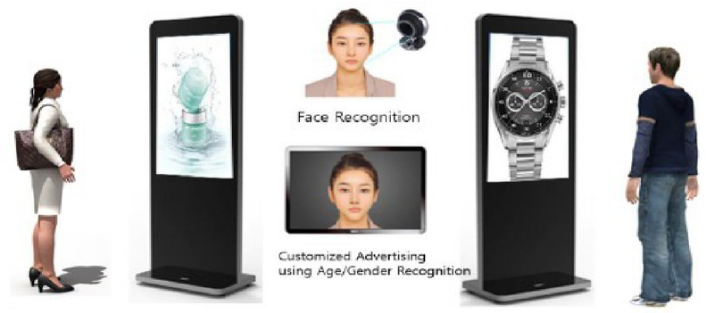 正如一开始提到的,基于GDSM智慧商显系统平台和星空电竞多屏拼接播放器的精准信息推送方案,整合了人工智能技术,在5G或有线网络的支持下,能够完成针对不同消费者推送不同消费者画像对应的产品。星空电竞拥有边缘计算能力的G系列多屏拼接播放器,适合作为AI人脸识别的硬件基础平台。通过训练完善的人工智能算法,针对不同的消费者标签,推送不同的广告信息。
