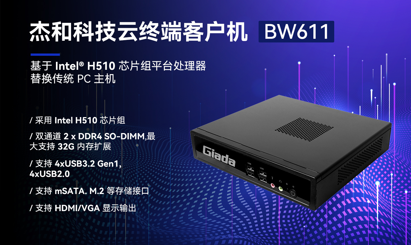 星空电竞科技云终端BW611体积小巧、双通道内存,性能强悍,接口丰富。