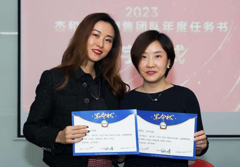 签约仪式上,一张张销售 “军令状”是确保完成2023年星空电竞销售战略的基石,同时是吹响再出发的冲锋号。各销售人员手捧责任状,虽知千斤担,但都敢于亮剑,勇攀高峰,责任状上一个个响亮的数字串就成星空电竞的星光大道 。