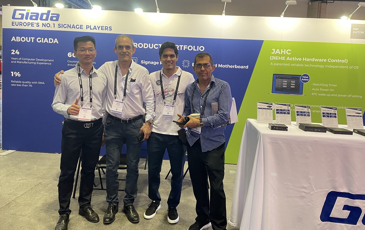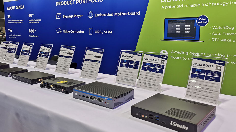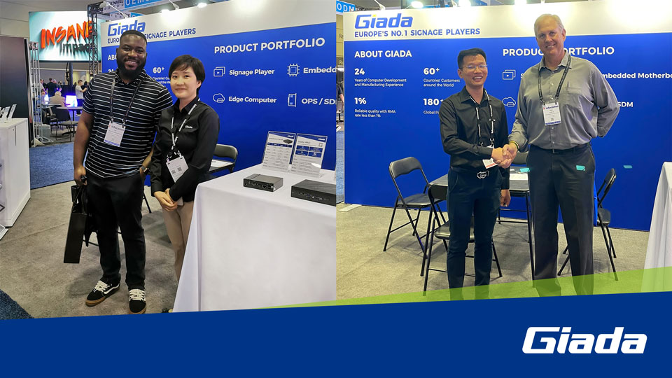 展会上Giada星空电竞科技携最新的数字标牌和信息亭应用解决方案以及最新尖端产品惊艳亮相!其中最新的数字标牌播放器、边缘计算机和OPS(开放式可插拔规范)产品在现场备受关注,标志着Giada星空电竞科技互动显示器和智能标牌解决方案领域的重大进步,也向全球参展观众集中展现了公司的非凡实力。