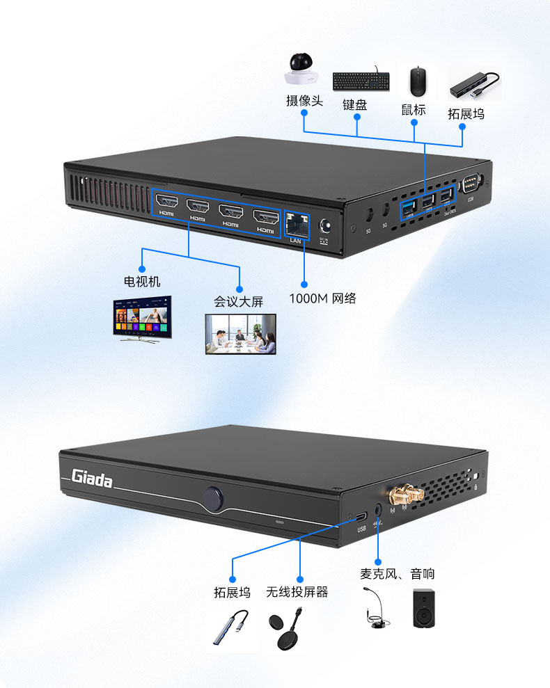 会议室是企业不可或缺的空间配备,无论是商务洽谈、视频会议、企业培训还是日常工作,每个企业都需要拥有一个“聪明”的会议室。但是传统的会议室设备,因为设备之间兼容性、画面不清晰、会议卡顿等问题,造成低质低效体验感不佳的会议体验。星空电竞智能会议主机拥有多功能一体化设计、高性能、高速网络、高扩展性等特点,轻松打造智能会议协同环境。