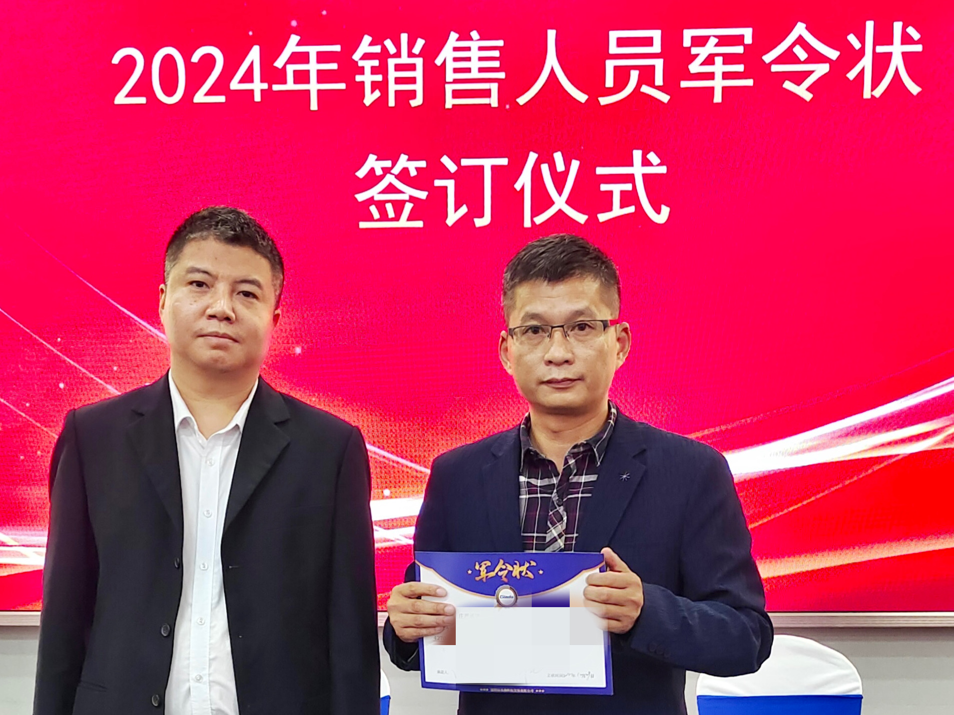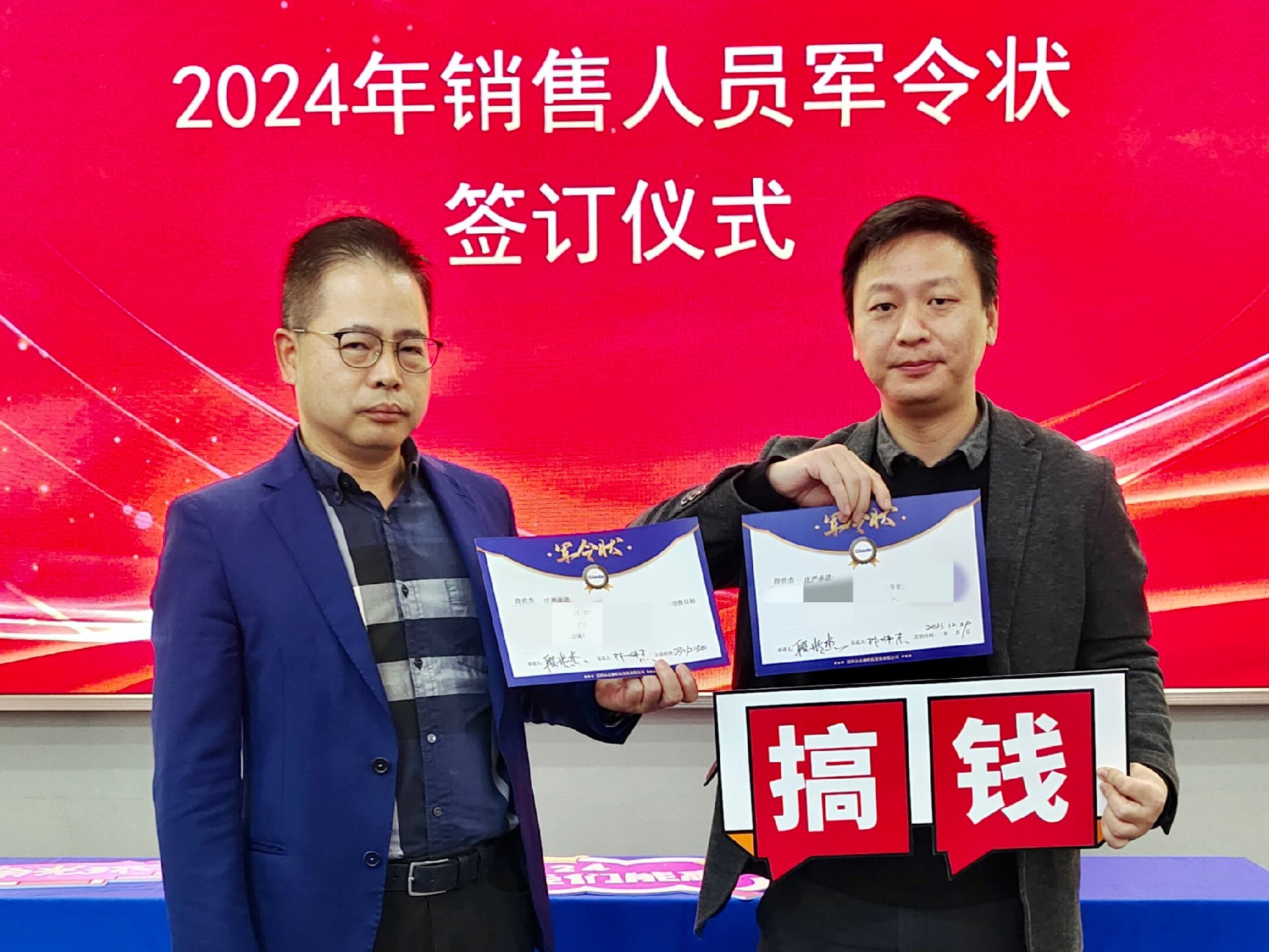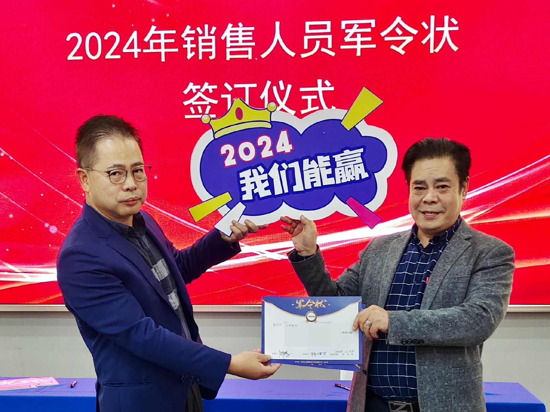 2024公司年度战略目标确立,言出必行,使命必达,国际/国内销售团队为了共同的目标开始军令状签约仪式。一纸军令状,是星空电竞科技与销售人员的双向承诺,是压力,更是动力。是不破楼兰终不还的决心,更是春风得意马蹄疾,一日看尽长安花的期待。