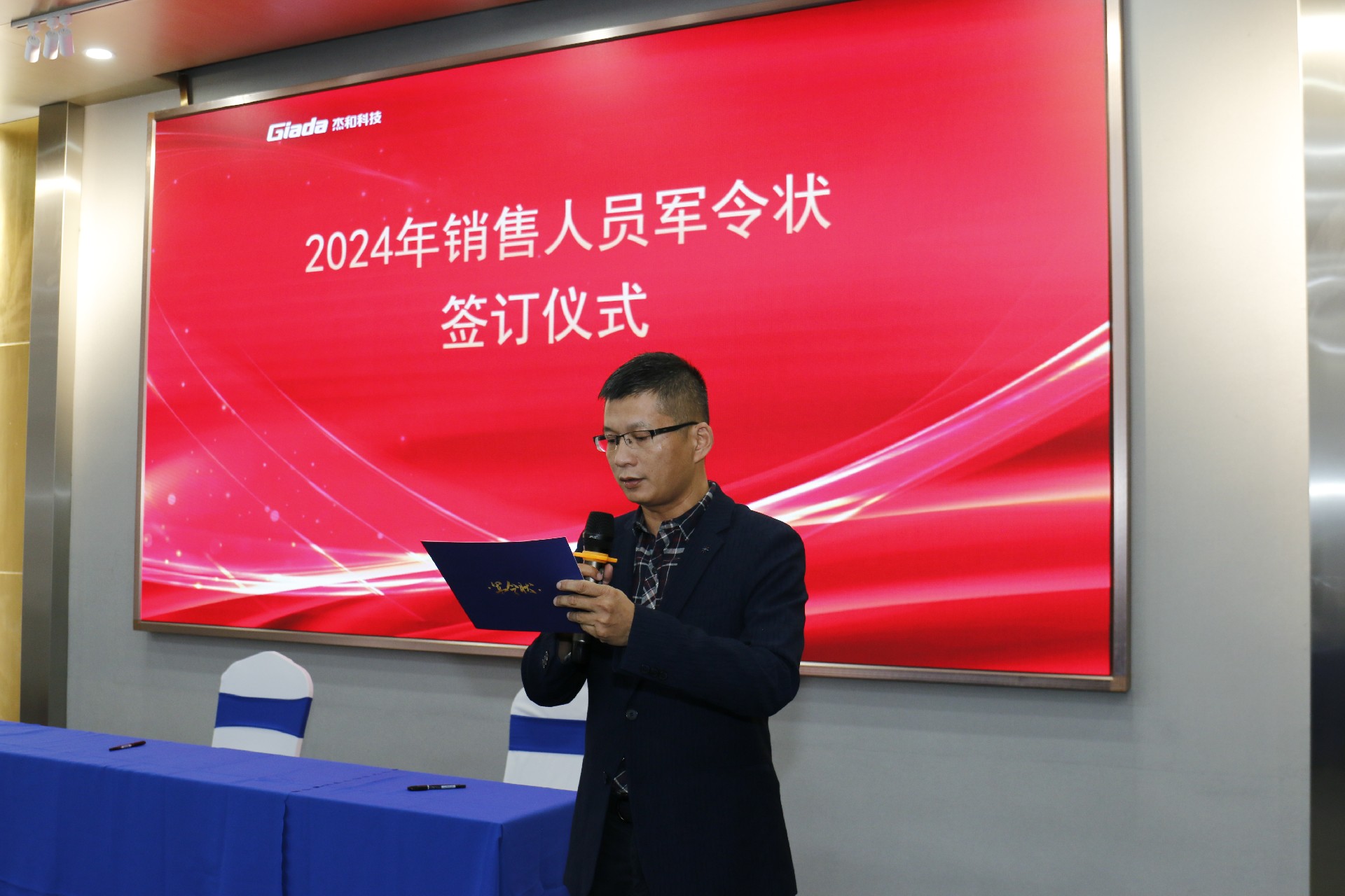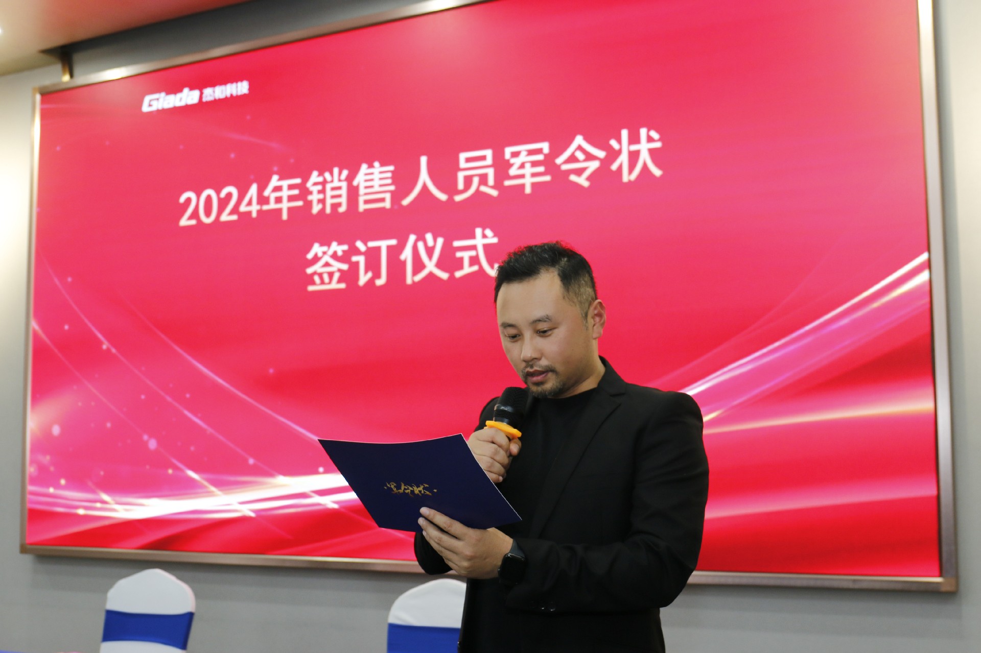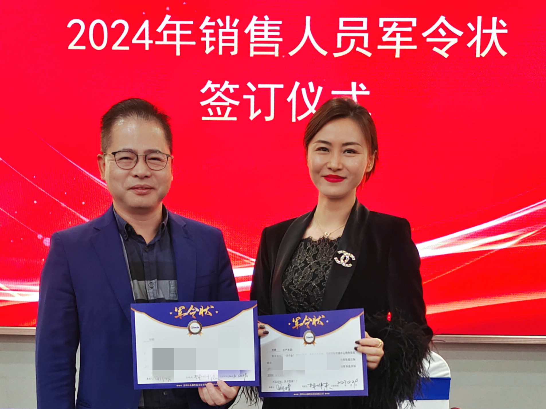 2024公司年度战略目标确立,言出必行,使命必达,国际/国内销售团队为了共同的目标开始军令状签约仪式。一纸军令状,是星空电竞科技与销售人员的双向承诺,是压力,更是动力。是不破楼兰终不还的决心,更是春风得意马蹄疾,一日看尽长安花的期待。