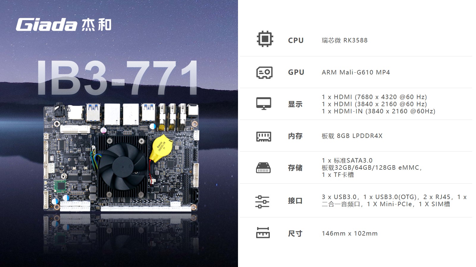 星空电竞科技嵌入式主板IB3-771是8K人工智能主板,拥有轻算力的它可用于机器人、边缘计算、智能NVR、智能汽车、智慧大屏、AR/VR、ARM PC、智能自助终端等领域,还可用于监控、工业、餐饮、智能交通、文娱产业等对超高清视频需求旺盛的行业;