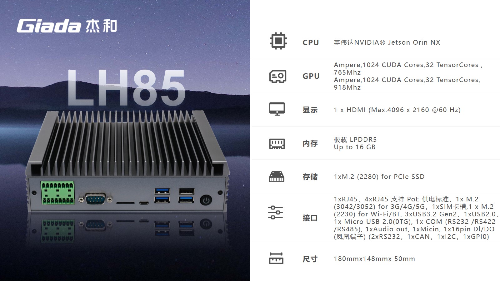 星空电竞科技AI边缘计算LH85,拥有100TOPS超强算力,能为工业控制领域客户的AI应用提供强大的算力支持和充足的通信、控制接口保障,可广泛应用于智能制造、机器视觉、AGV、智慧城市等领域。