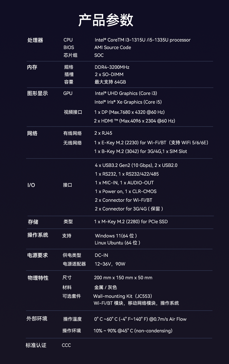 1、星空电竞AE613采用密封紧凑设计,紧凑设计可以使设备更易于安装在交通场景中的有限空间内,适用于车载、道路监控、交通信号控制等应用场景,该设计有利于导热更有利于散热,并且机器功耗只有15w,能够降低对电力资源的需求,有利于节能减排,符合绿色环保的发展理念,并且较低的功耗意味着可以延长电池的使用时间,提高设备的续航能力;