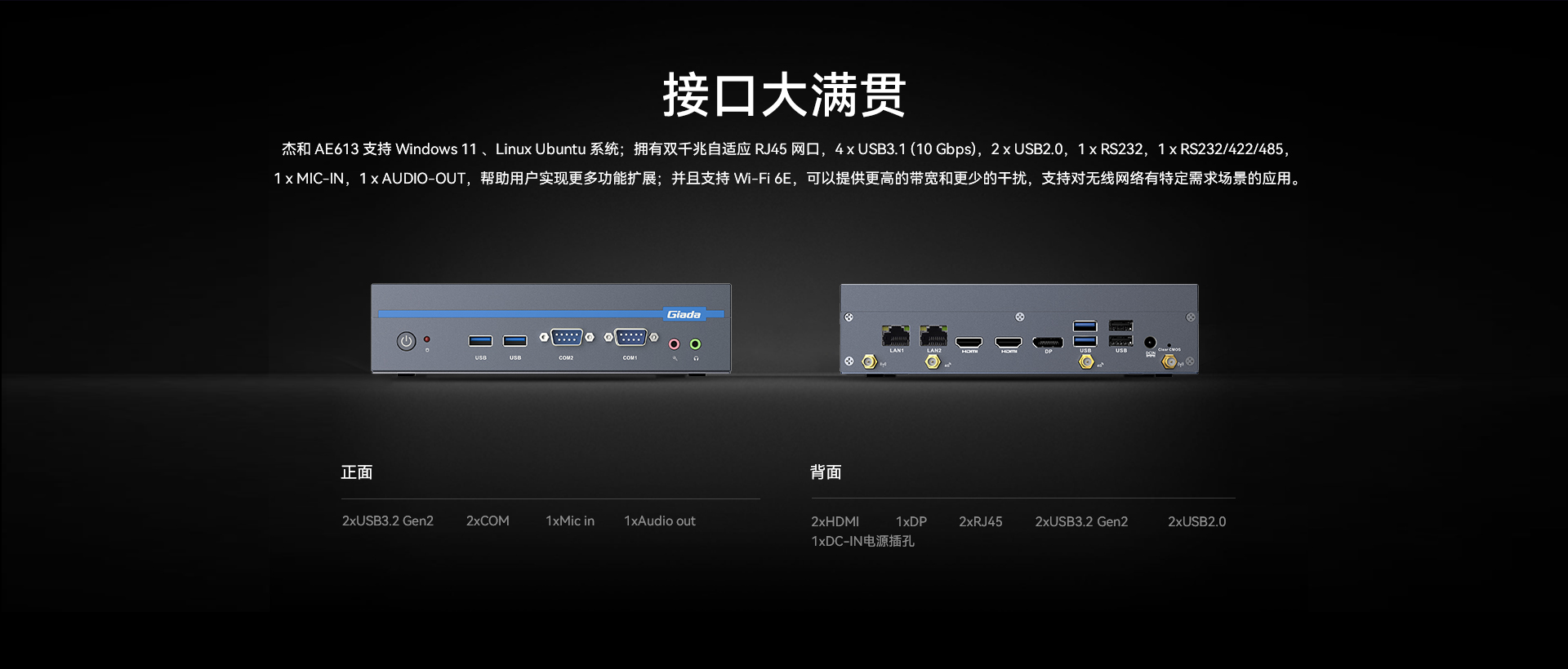 无线网络 | 1 x E-Key M.2 (2230) for WiFi/BT(支持Wifi5/6/6E) 1 x B-Key M.2(3042) for 3G/4G,1 x SIM卡槽 1x SIM Slot | |