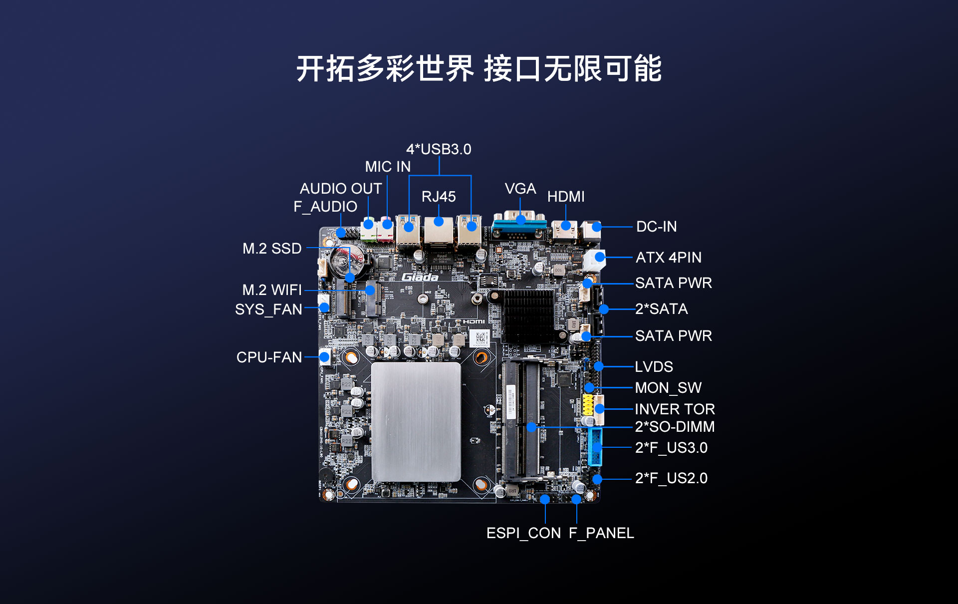 内部I/O | 接口 | M.2(2088) for(pcie4.0 x4/SATA3.0) SSD M.2(2230)for WIFI/BT 2 x USB2.0 9pin 1 x CLR_CMOS插针3pin 1 x MON-SW 5pin |