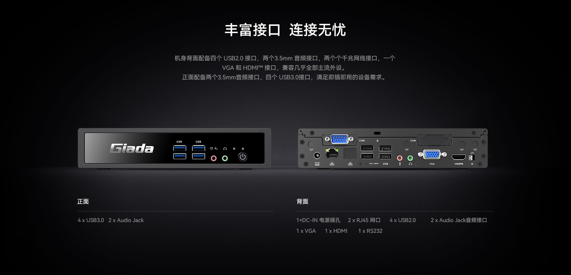 音频接口 | 1 x Audio out,1 x Mic in,1 x 二合一音频口(后置) | |