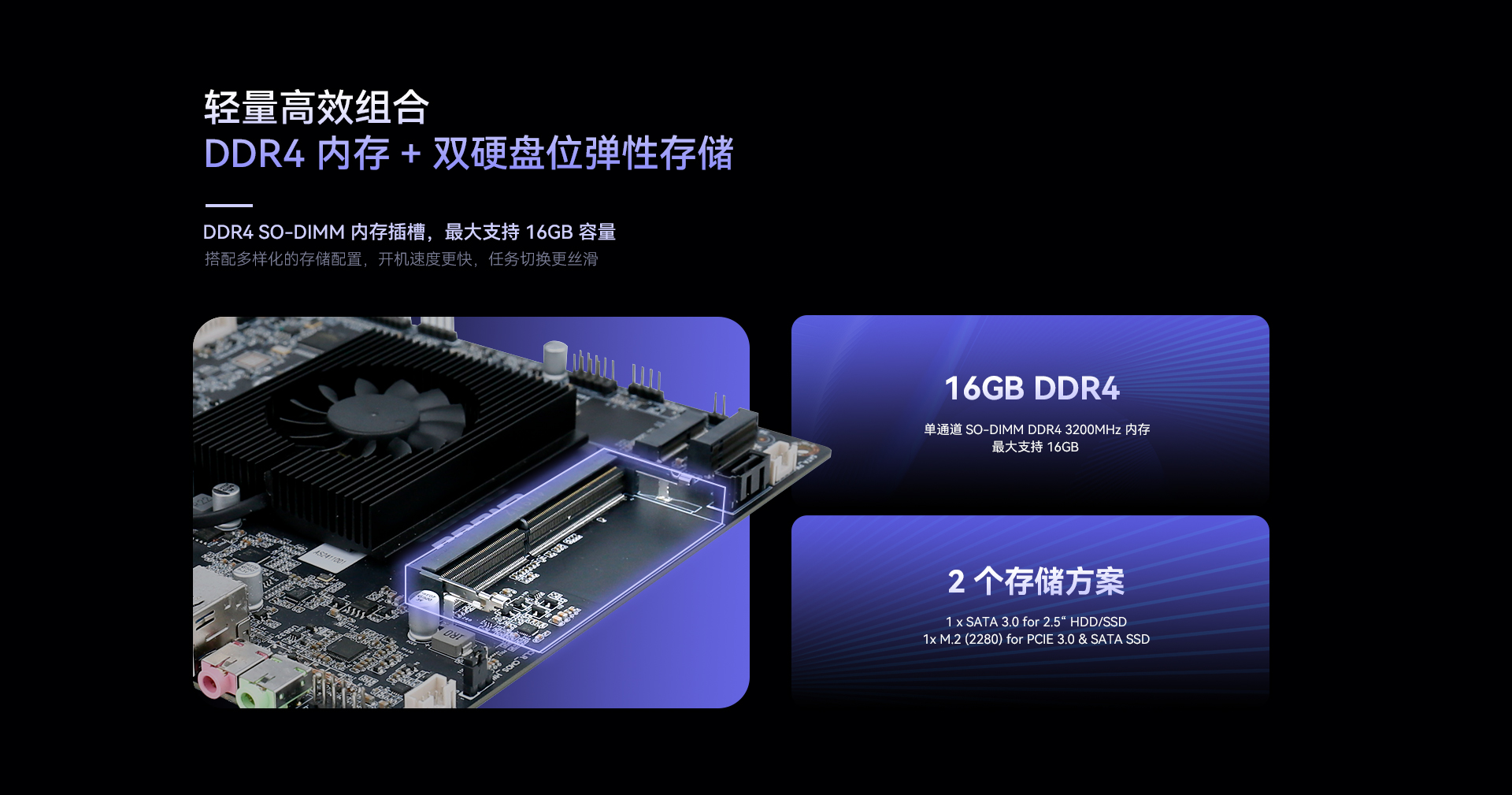 存储 | 类型 | 1xM.2(2280)for(pcie3.0x1&sata)SSD 1xSATA for HDD/SSD |