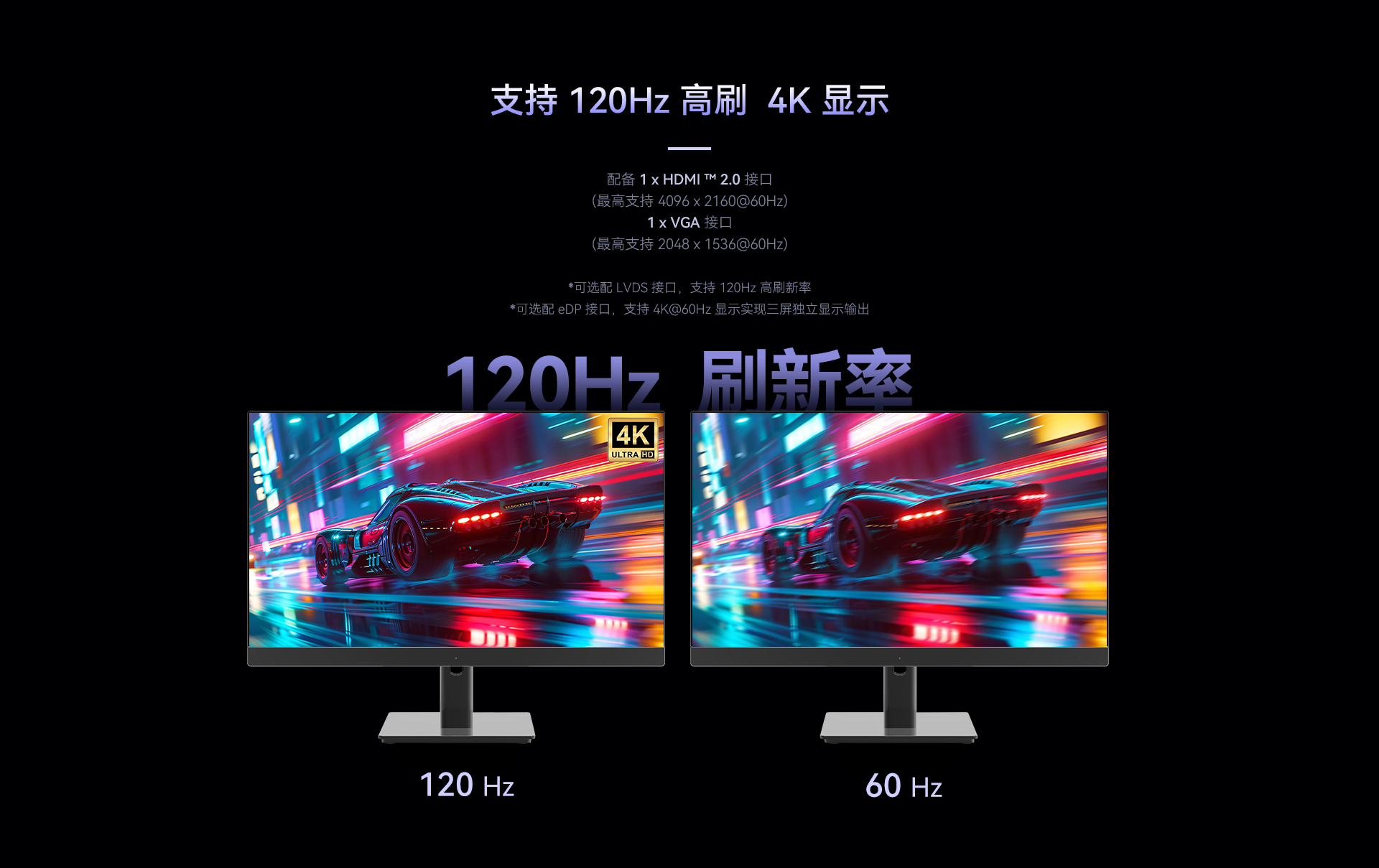 外部I/O | 接口 | 4xUSB3.2Gen2(10G) 1xVGA(Max.2048x1536@60Hz) 1xHDMI™2.0(Max.4096x2160@60Hz) 1xLVDS(双通道24Bit Max1920*1080@60Hz/100Hz/120Hz) 1xMIC-IN,1xAUDIO-OUT 1xRJ45(1000M) 1xRS232(COM/VGA二选一) |