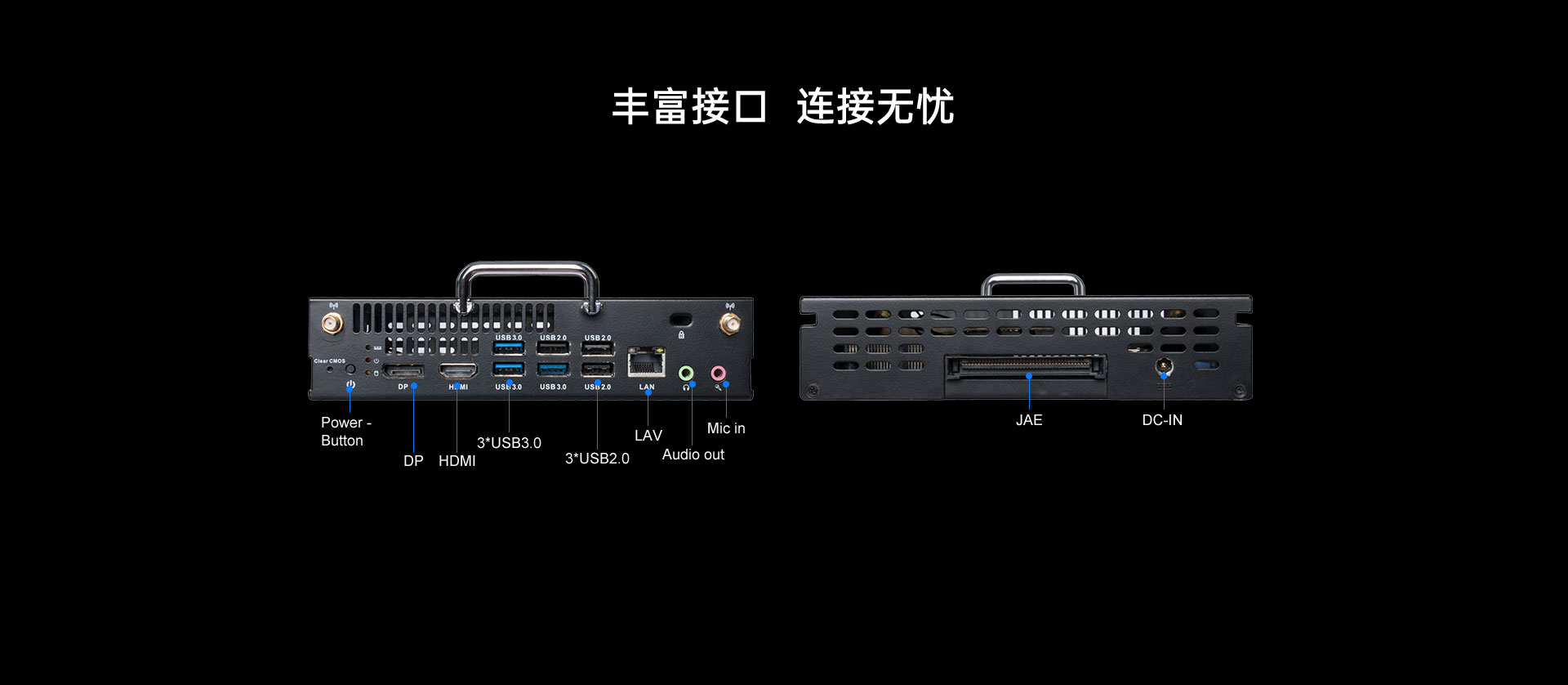 视频接口 | 1 x HDMI (Max. 4096 x 2160@60Hz) 1 x DP (Max. 4096 x 2304@60Hz) JAE端:1 x HDMI (Max. 4096 x 2160@60Hz) | |