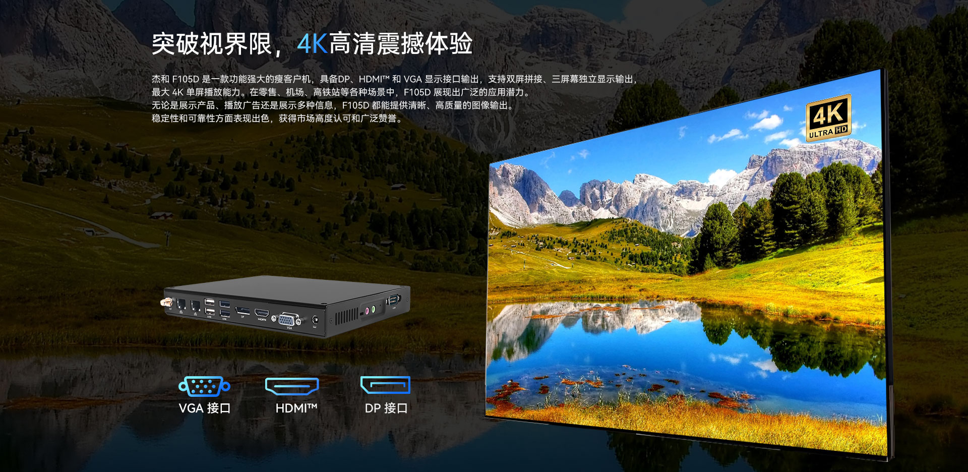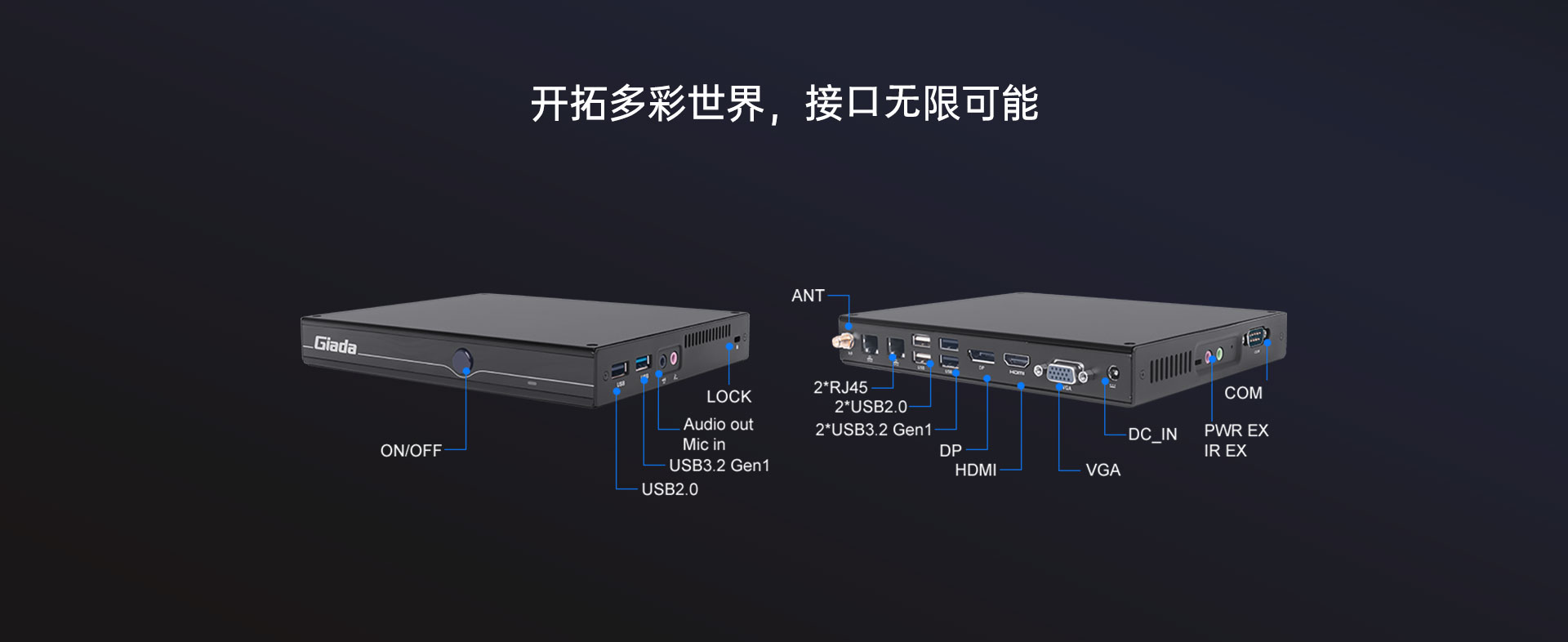 视频接口 | 1 x HDMI (Max. 3840 x 2160@60Hz) 1 x DP (Max. 3840 x 2160@60Hz) 1 x VGA (Max. 1920 x 1080@60Hz) | |