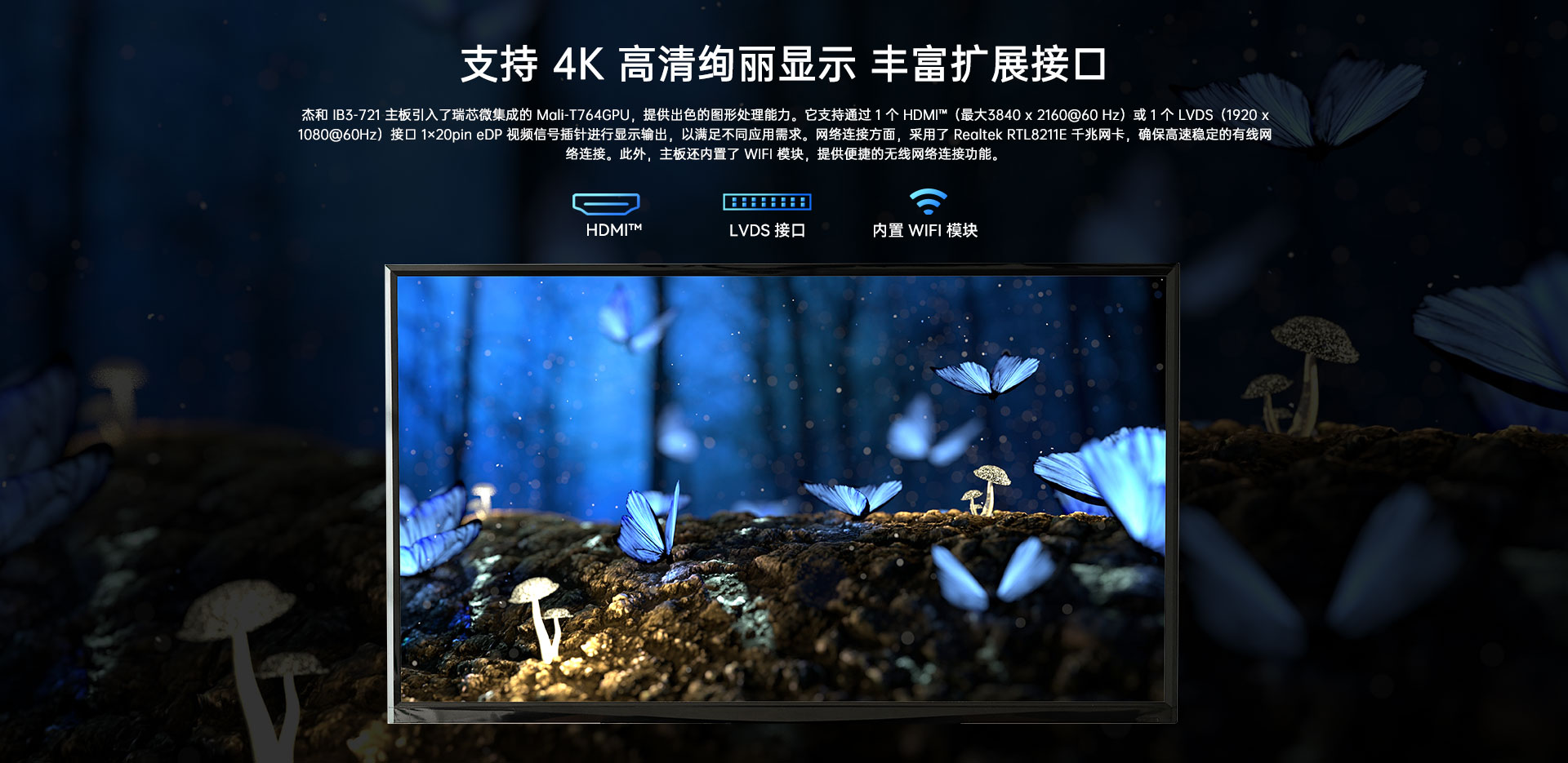 外部I/O | 接口 | 1 x HDMITM(Max.4096 x 2160 @60 Hz) 1 x LVDS(Max. 1920x1080@60Hz)(可选eDP/MIPI-DSI) 1 x USB2.0(OTG),1 x USB2.0 1 x RJ45 1 x TF卡槽 1 x 2-IN-1 Headset (AUDIO-OUT & MIC-IN) |
